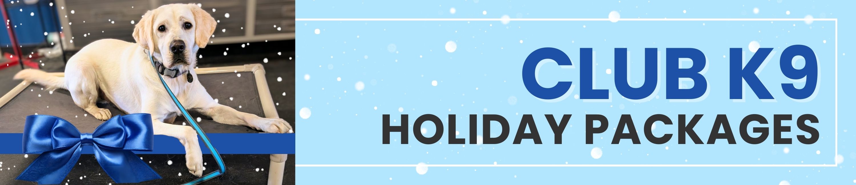 Club K9 Play & Train or Party Pup: Buy any package between now and January 1st, 2026 and receive a promo code for 30% off your next package of any size that is purchased in 2026. Up to $202 value for single dog packages and up to $379 for sibling packages!